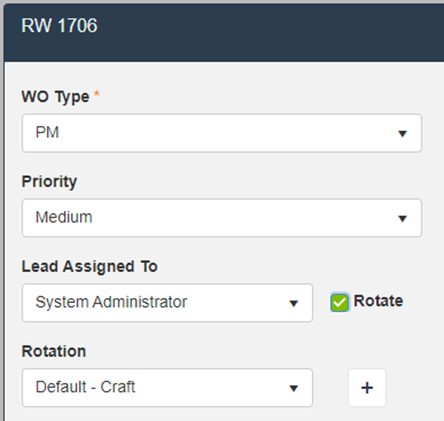 - To configure a new Rotation, simply click the Plus button next to the Rotation dropdown or navigate to the Rotations menu found under the gear in the upper right -> Configuration Mode -> Assets & Work Management (menu shown below).