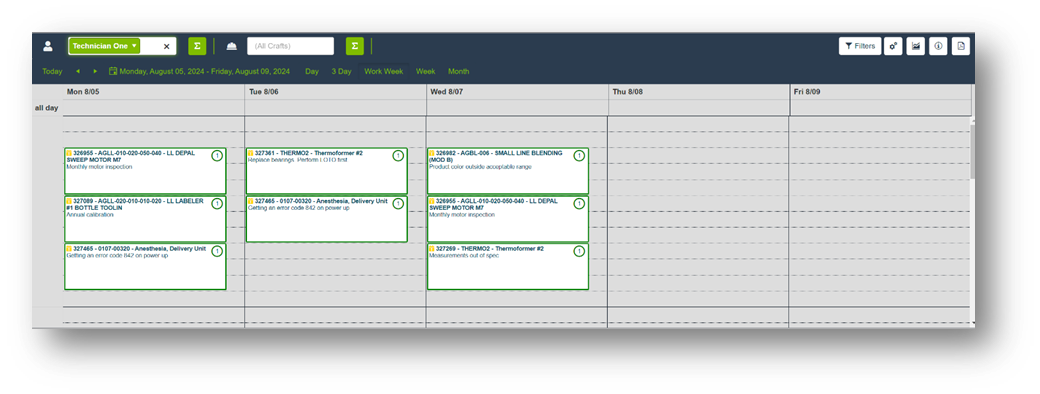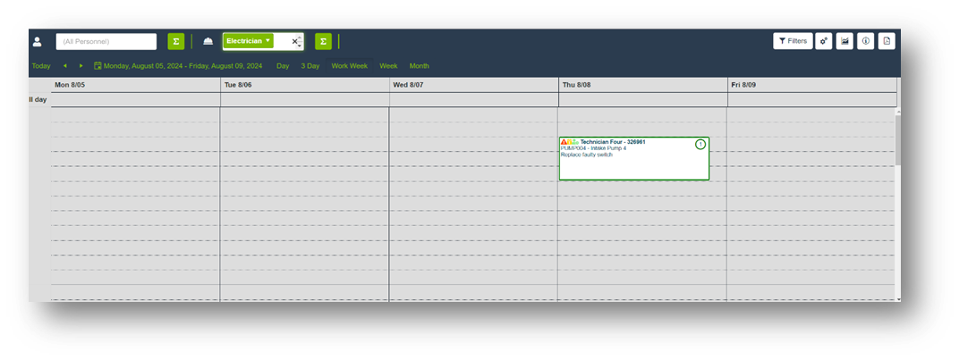 To enhance your scheduling efficiency, the Work Order Calendar includes filtering options to customize the view based on specific criteria.