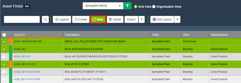 - To open multiple Assets at once, use the left-most checkbox to select the Asset(s) you would like to open and select the View button.