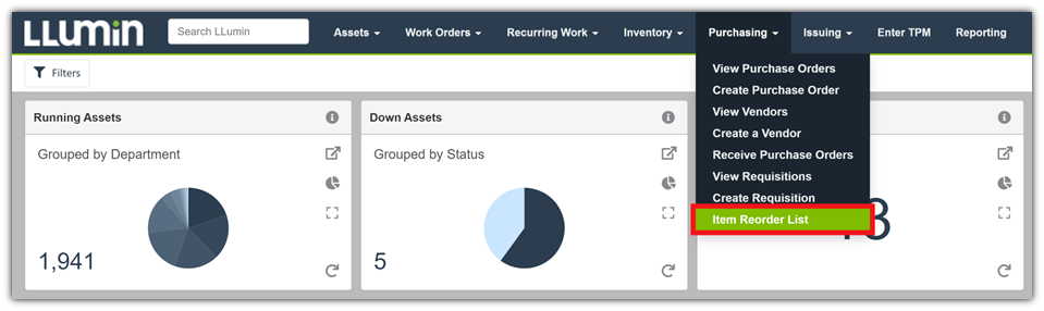 - Select Item Reorder List.