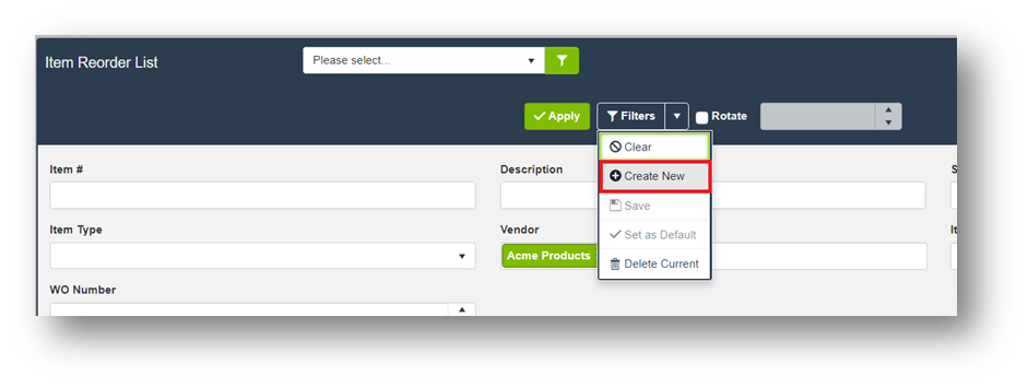 - To save a filter for future use, apply the filters and select Create New in the filter options.