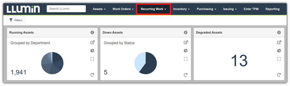 - Navigate to the Recurring Work drop-down menu on the menu bar.