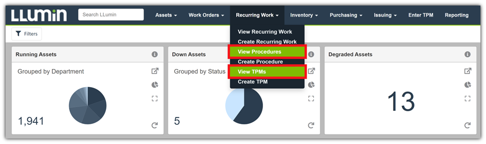 - Select either View Procedures or View TPMs from the drop-down menu.