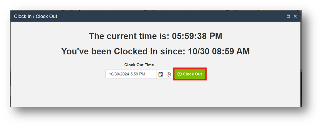 - Click Confirm to finalize your clock-out.