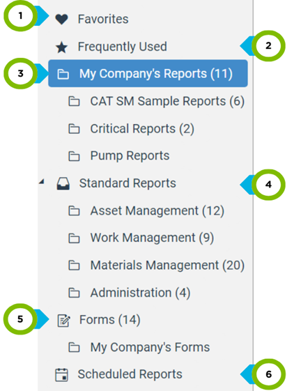 | 4 | Heart Icon | Add a report to your Favorites by clicking the heart icon that appears on the report tile. |