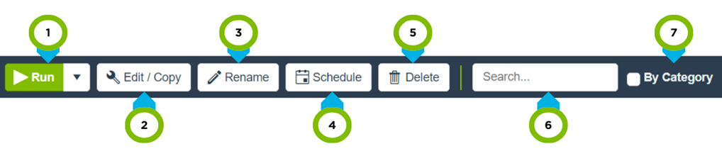 | 2 | Edit / Copy | Allows customization of reports. Save a new version after making edits. |