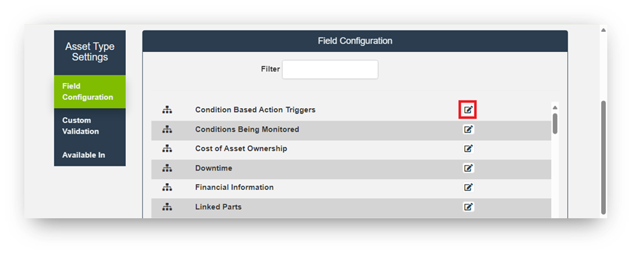 - Once you have made updates in any of these sections, click Save to apply the changes to the Asset Type.