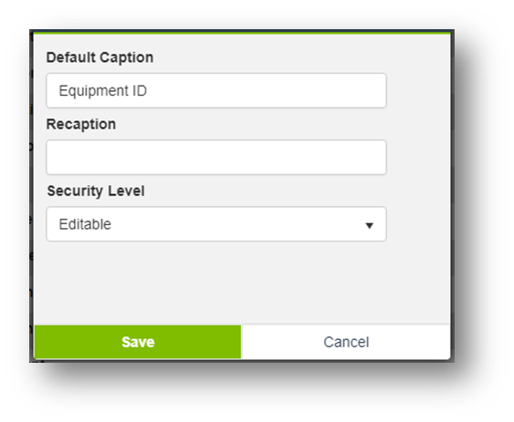- Here, users can adjust which fields are visible, recaption fields, or modify security levels (e.g., hidden, editable, or required) on an asset type.