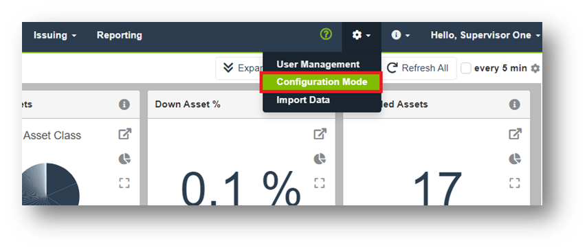 On the Configuration Mode screen, click the Materials Management card to find configuration options for materials-related settings.