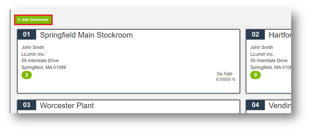Click Add Stockroom.