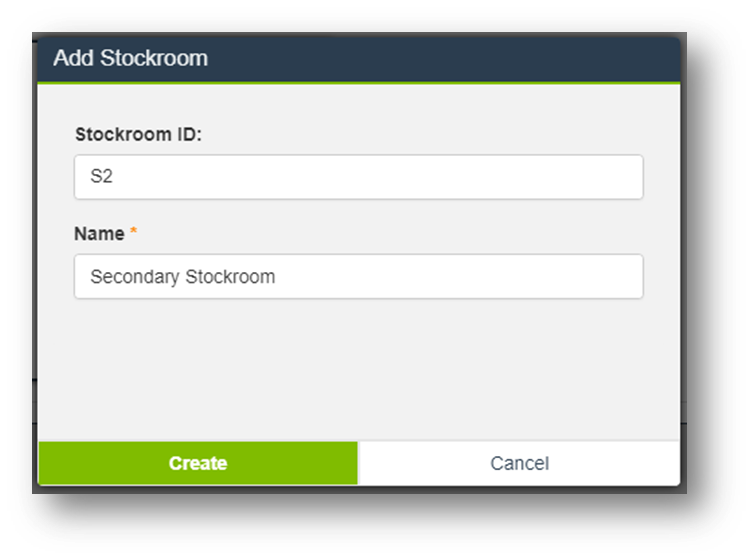 - ID: A unique identifier for the Stockroom (up to 2 characters, no spaces or special characters).