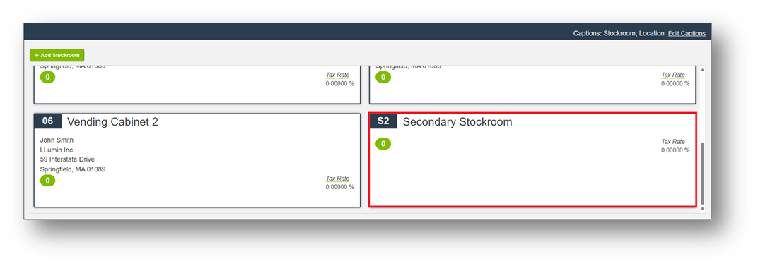 - Click Save to include the location for that Stockroom.