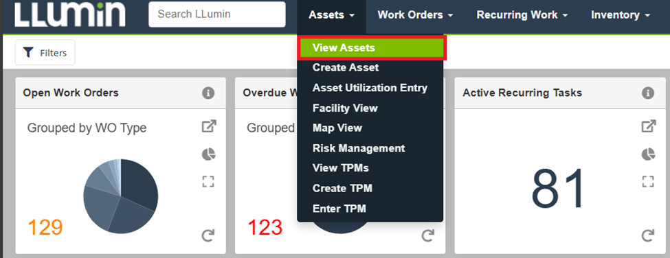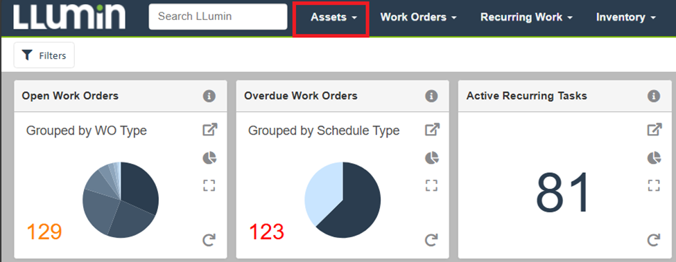 - Navigate to the Assets tab in the top menu bar.
