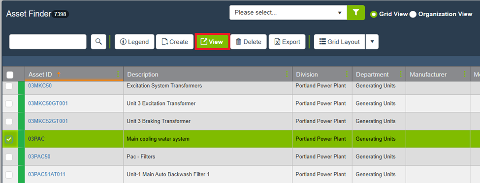 - Select the asset with the completed TPM and click View.