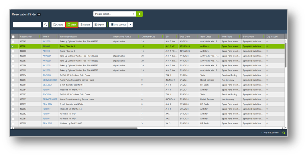 Reservations let you plan part usage and issue items later, without removing them from current stock.