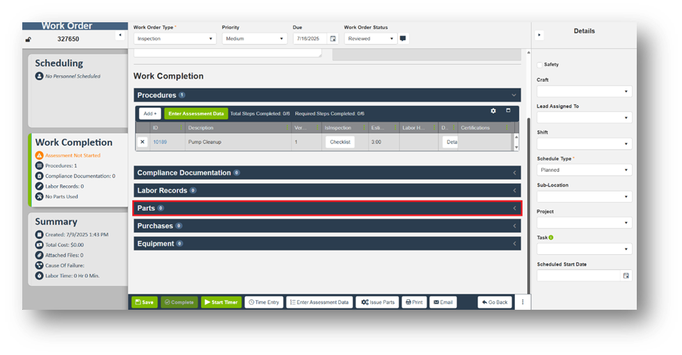 - For Recurring Work: When a new Work Order is generated, any parts listed will automatically trigger reservations.