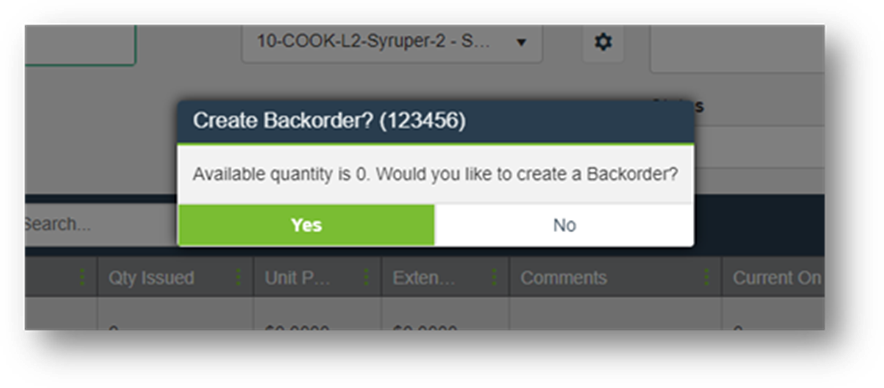 If there is insufficient stock, a popup will appear, giving you the option to create a Backorder. Click Yes or No.