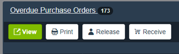 Individually Receive Purchase Orders by selecting the Purchase Order and clicking the Receive button; this button will only be available if the Purchase Order is in a Released or Partially Received status. Selecting a Purchase Order and clicking the Receive button will navigate to the Receiving screen to complete the receipt.