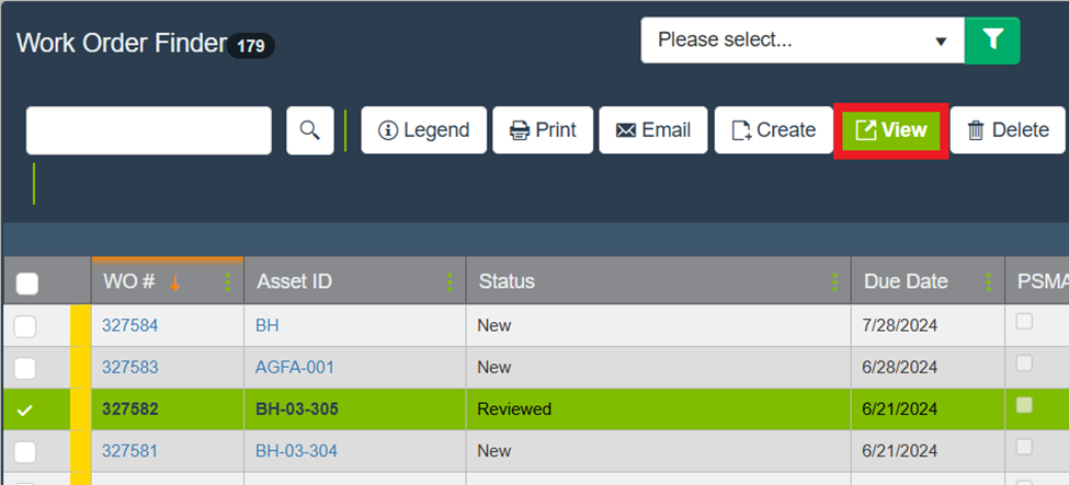 Locate the work order and click View to open it.