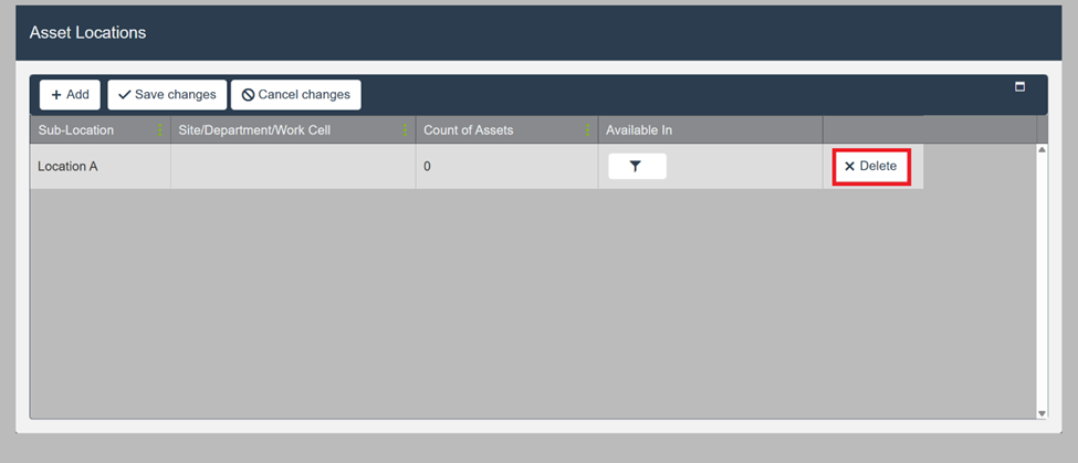 NOTE: Deleting a location may affect any assets assigned to it. Reassign assets before deletion.