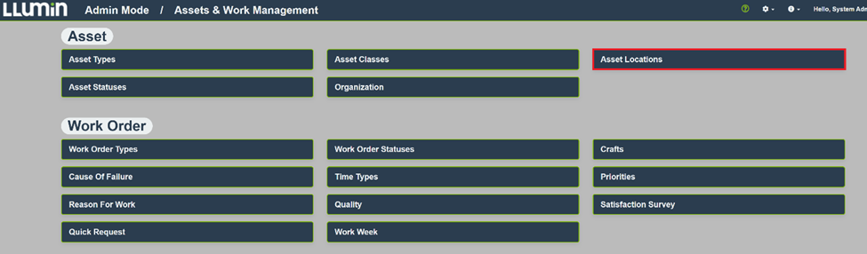 Under Asset, click Asset Locations.