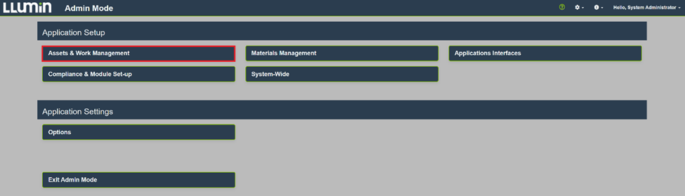 Under Application Setup, select Assets and Work Management.