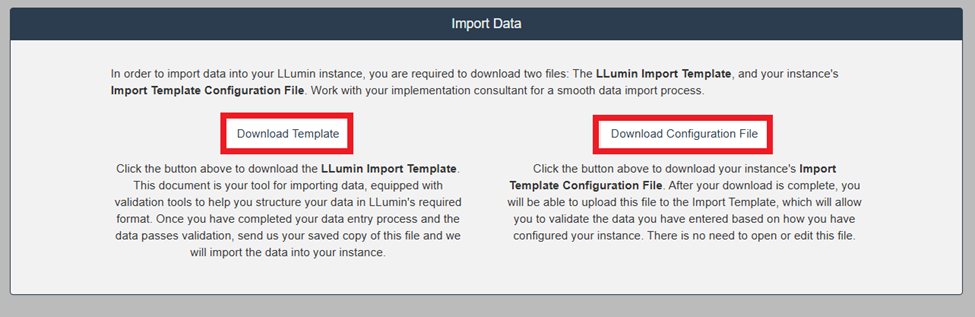 Important: Work with your LLumin implementation consultant to ensure a smooth import process and avoid data conflicts.