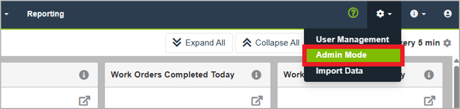 Select the Gear icon in the top navigation bar, and then select Admin Mode.