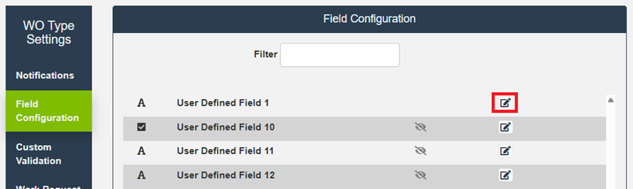 Locate a User Defined Field (UDF) and select the Edit icon.