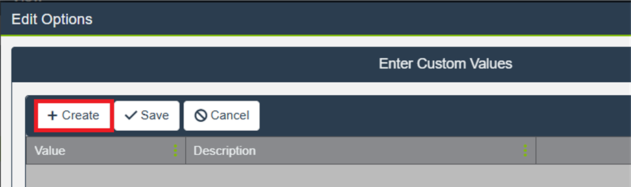 Enter the desired Value(s) and optionally add Description(s) for clarity.