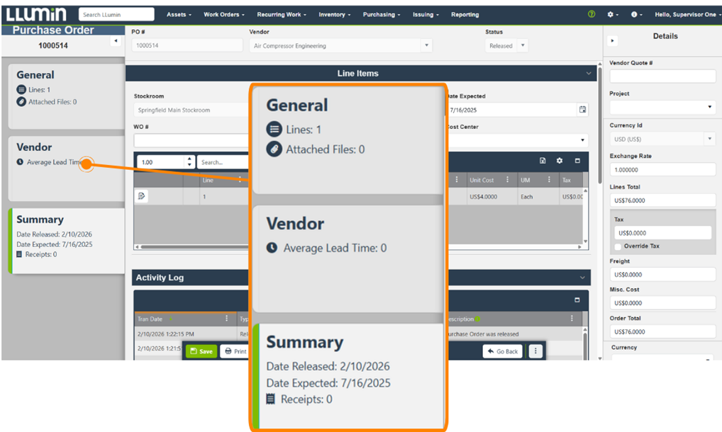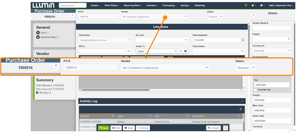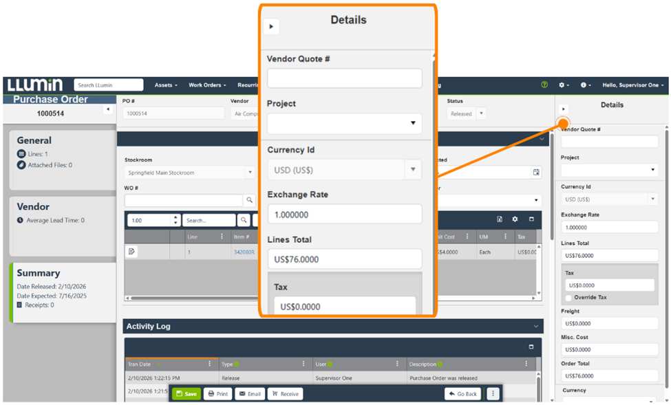 The result is a more cohesive interface that feels familiar across Assets, Work Orders, Items, and now Purchase Orders.