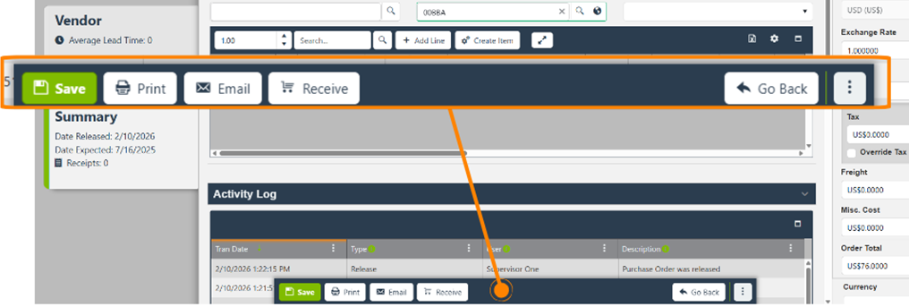 Purchase Order Toolbar