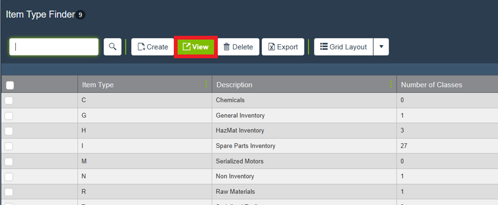- In the Item Type Finder, locate the Item Type.