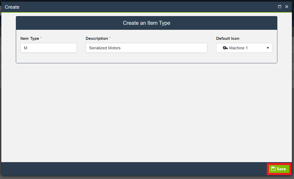 Select Save at the bottom of the screen to finalize any updates made to the Item Type.