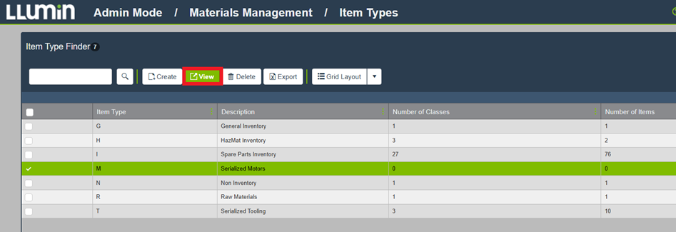 Navigate to Materials Management > Item Types.