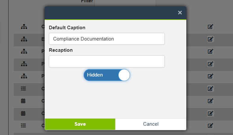To change the name of the field, enter a new value in the Recaption box.