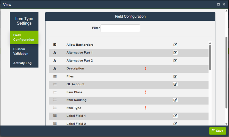 Configure Item Type Fields (Field Configuration)