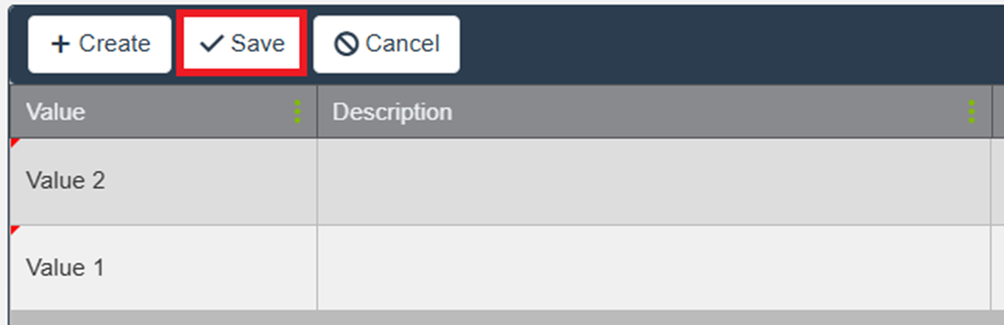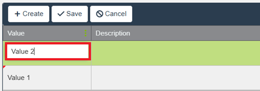 Enter one or more Values, and optionally add Descriptions for clarity.