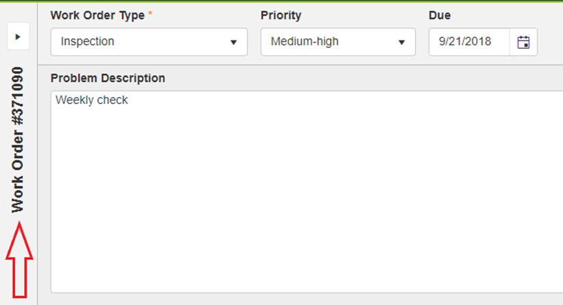 - The Header section includes the WO Type, Priority, Due Date, Status, Problem Description, and Asset listing which includes the new carousel view.