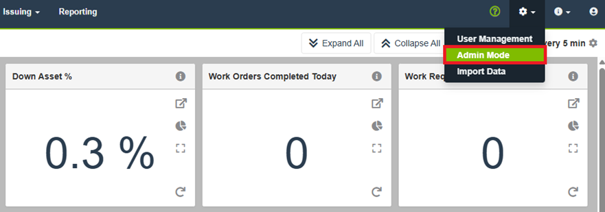 点击顶部导航栏的齿轮图标,然后选择管理员模式。