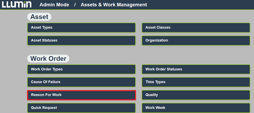 选择资产与工单管理 > 工单原因。