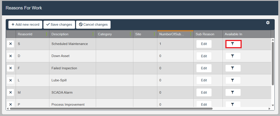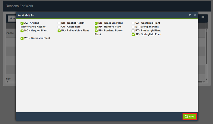 - 勾选或取消勾选该原因应在哪些位置、工厂或站点可用。