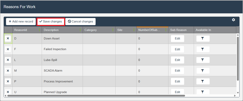 - 如果不添加子原因,点击保存更改以确认新建内容。