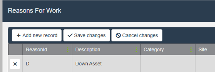 - X:删除某个工单原因。