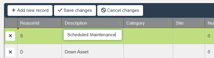 原因ID:必须是唯一的单个字母(A–Z)或数字(0–9)。